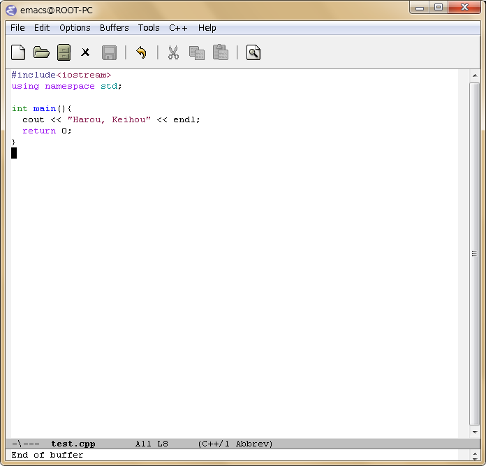 次のプログラムをtest.cppとかで保存してコンパイルして実行します。